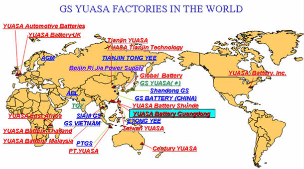 廣東湯淺YUASA蓄電池有限公司成立于1996年10月31日,位于廣東省佛山市。是 “GS - YUASA”(株式會社 - 杰士湯淺)在中國大陸地區授權經營湯淺系列閥控式鉛酸蓄電池的全資子公司。